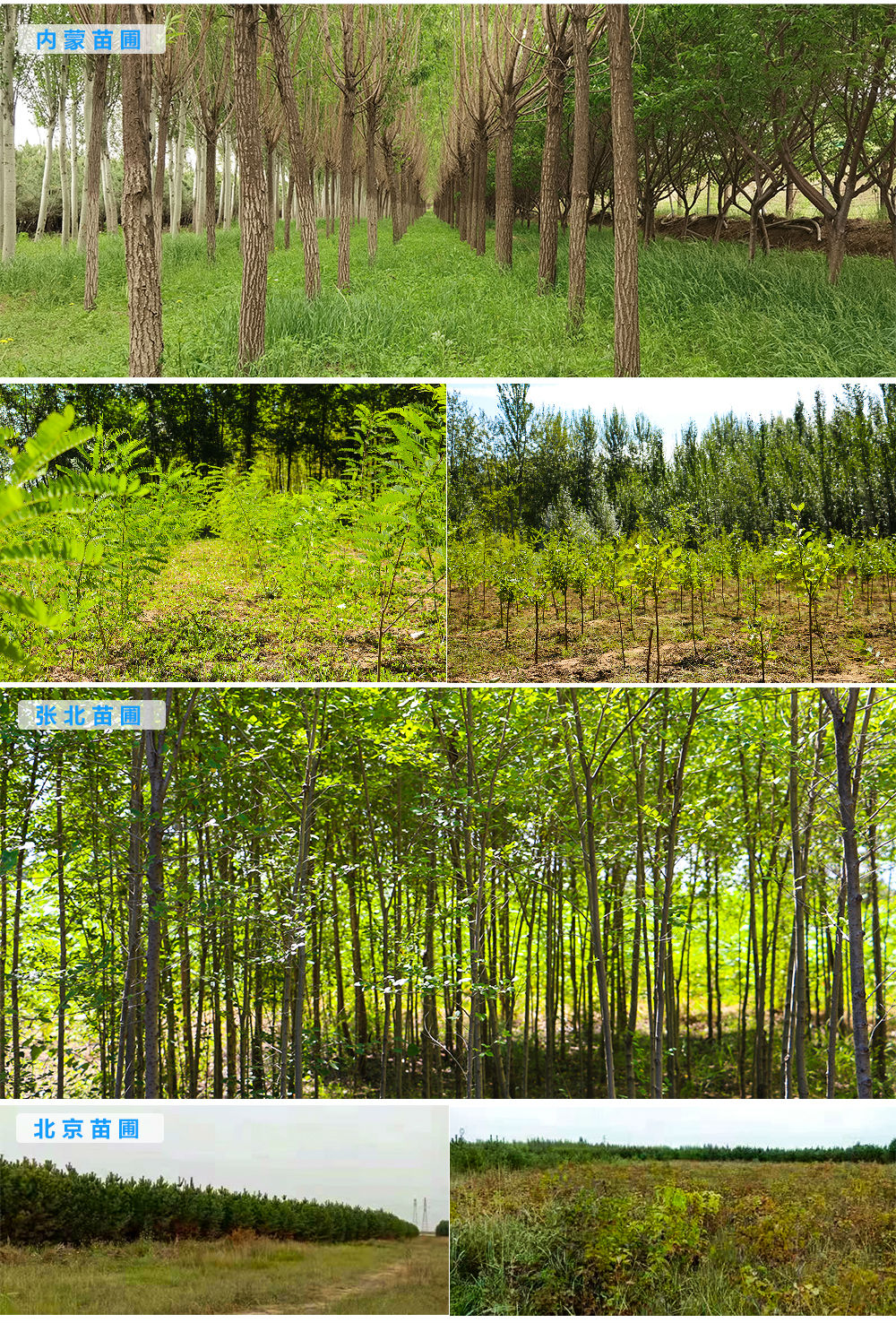 我公司现有自建苗圃四个,分别位于北京、河北、内蒙古地区,占地面积3000多亩。苗圃内长年种植各类落叶及常绿乔木达十万余株,各类花灌木二十余万株及地被植物200余种,品种丰富、数量充足。为企业所承担的各项工程项目提供了有力的苗木资源保证。除此之外,万亩乡土树种繁育中心也正在积极地筹建当中。