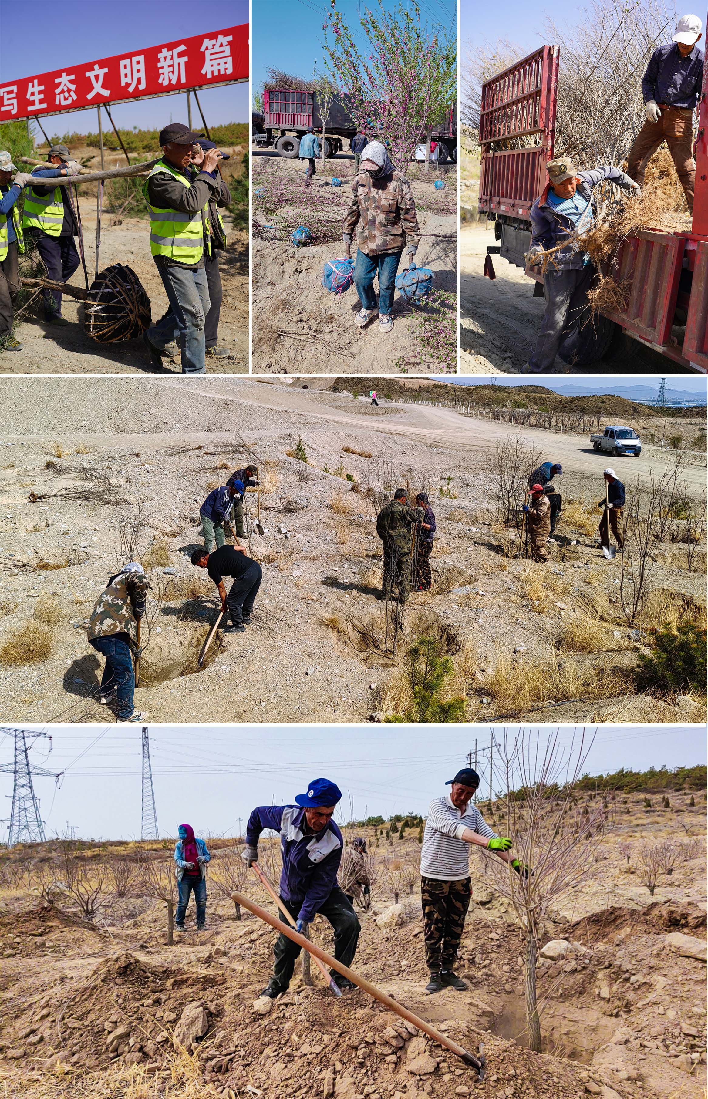 挖坑 运苗 种树 浇水